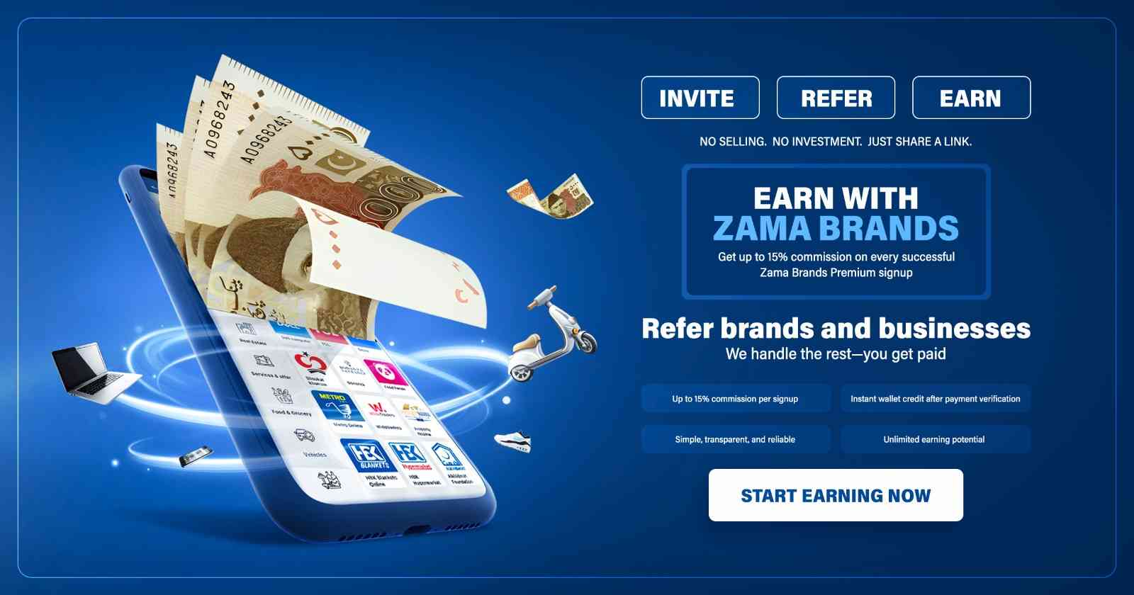 Whether you want to sell your products or just refer others, Zama Brands lets you earn without limits.