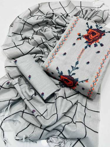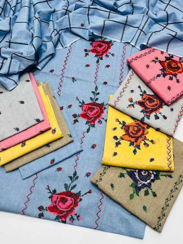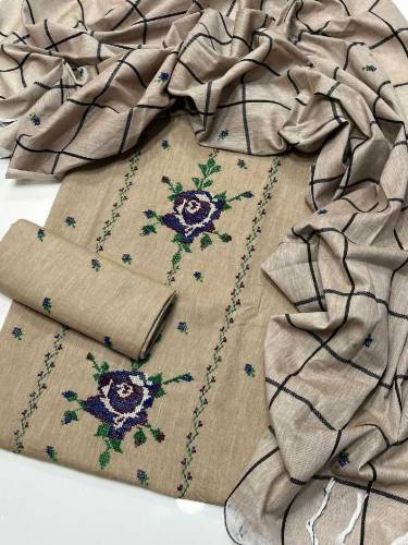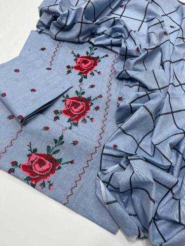 3 pcs women's unstitched embroidered suit