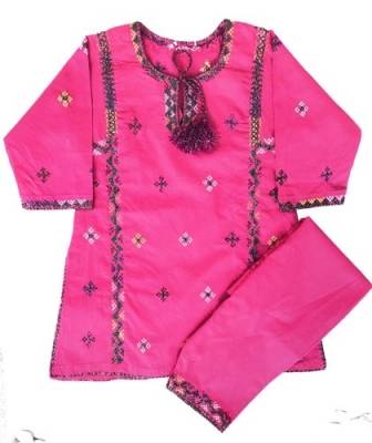 2 Pcs Girl's Chiffon Embroidered Frock And Trouser Set