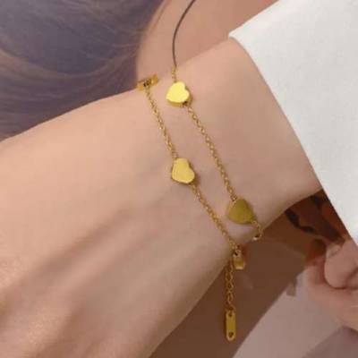 Golden Stainless Steel Black Clover Bracelet | Daily & Party wear